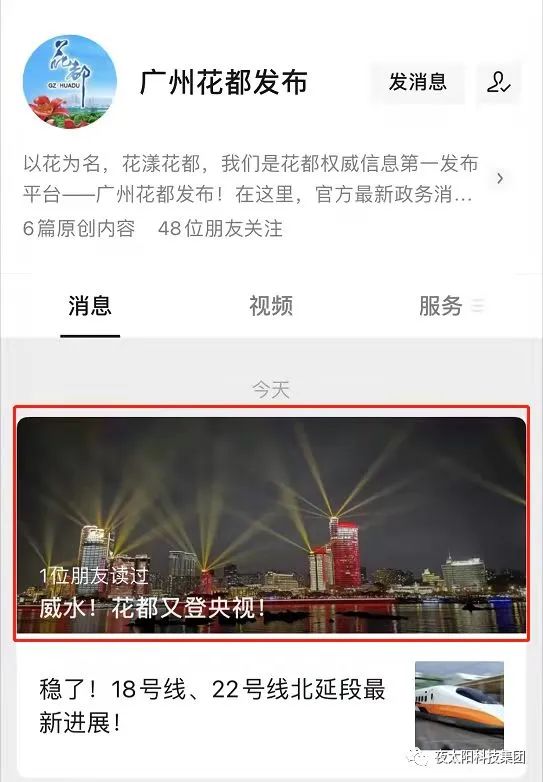 這一年,花都區(qū)政府官方微信公眾號:廣州花都發(fā)布和今日花都,頭條發(fā)布文章《威水,花都又登央視》和《驕傲、花都燈光又叕登央視》二文,將集團26年來對燈光行業(yè)的堅持和創(chuàng)新,以及將協助花都政府打造夜間光影科技之花做了報道。